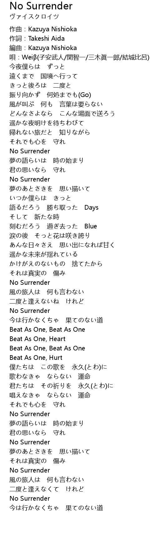 | [0:19.000] | 唄:Weiβ(子安武人/関智一/三木眞一郎/結城比呂) |