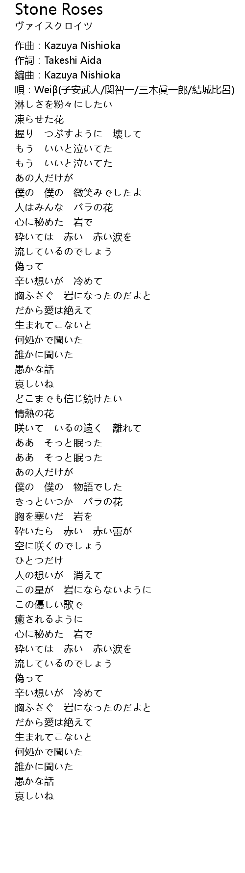 | [0:04.600] | 唄:Weiβ(子安武人/関智一/三木眞一郎/結城比呂) |