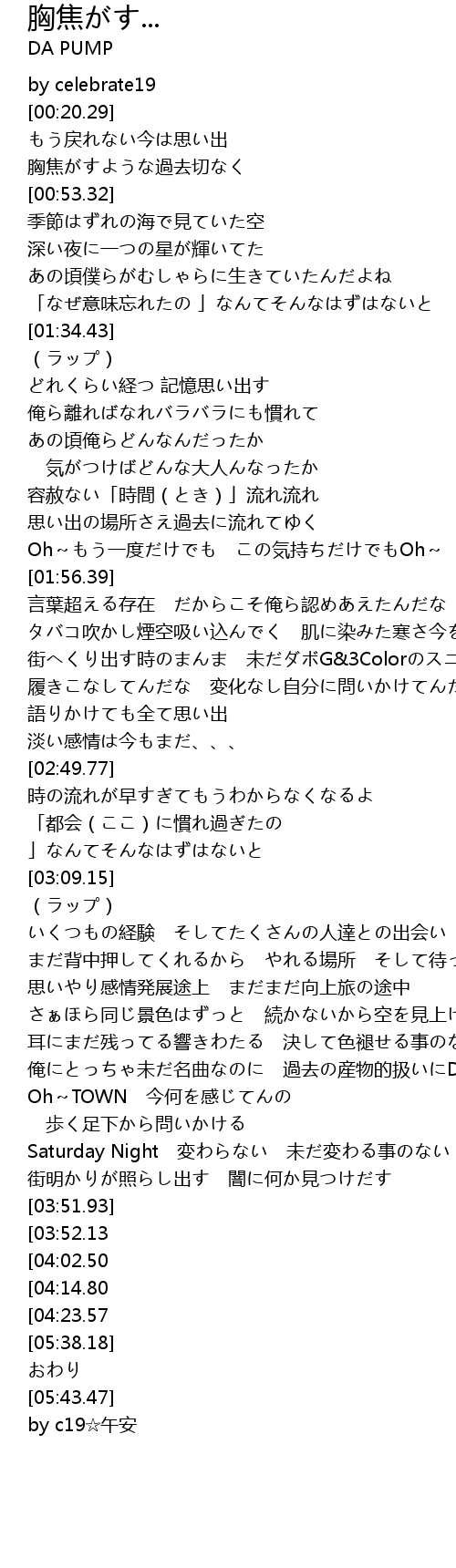 | [05:05.97][04:02.50] | 胸焦がすような過去切なく |