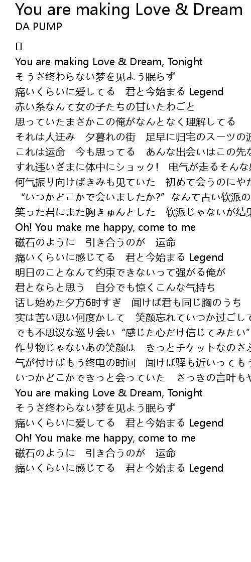 | Song | You are making Love & Dream |