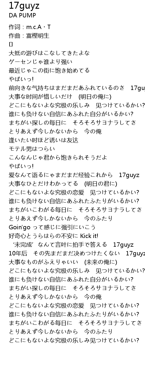 | 前向きな气持ちはまだまだあふれているのさ 17guyz | |