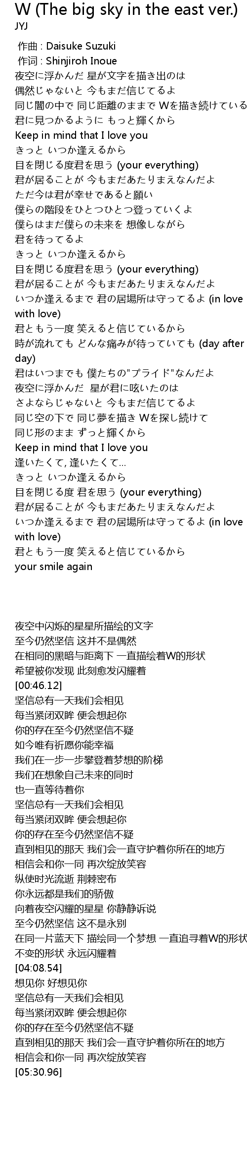 | [04:48.65] | 目を閉じる度 君を思う (your everything) |