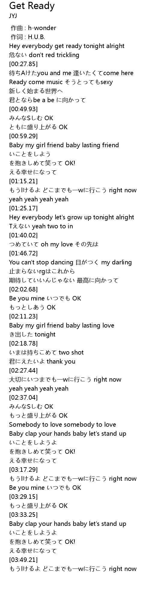 | [00:20.90] | Hey everybody get ready tonight alright |