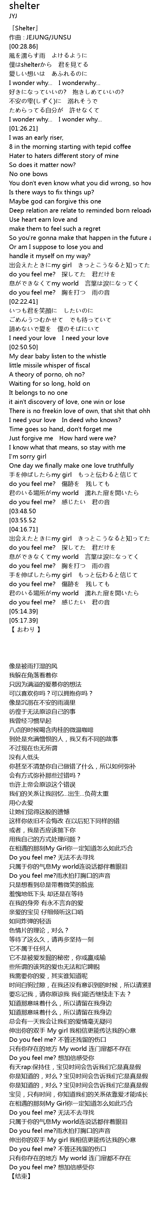 | [00:01.86] | 「Shelter」 |