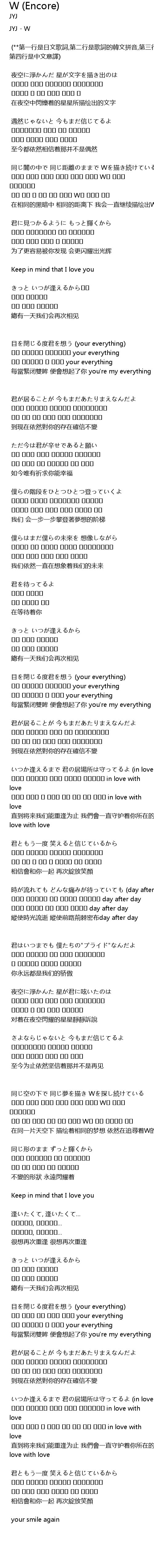 | (**第一行是日文歌詞,第二行是歌詞的韓文拼音,第三行是韓文的意譯, 第四行是中文意譯) | |