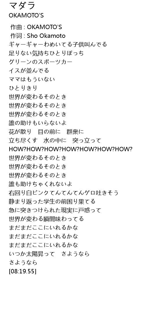 | [00:00.000] | zuo qu : OKAMOTO' S |