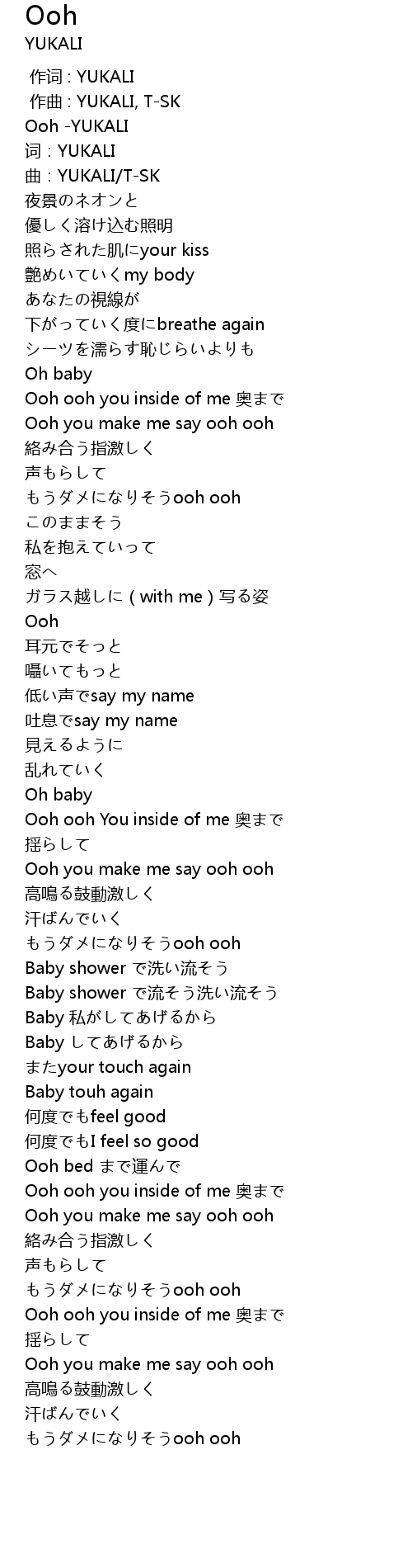 | [00:00.404] | Ooh -YUKALI |