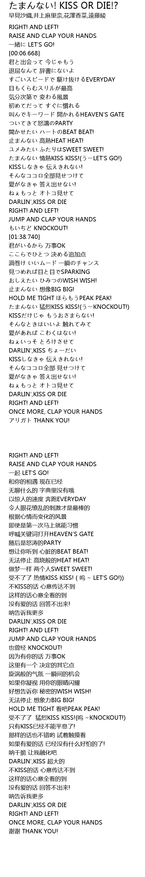 | [01:06.841] | qíng rè KISS KISS! LET' S GO! |