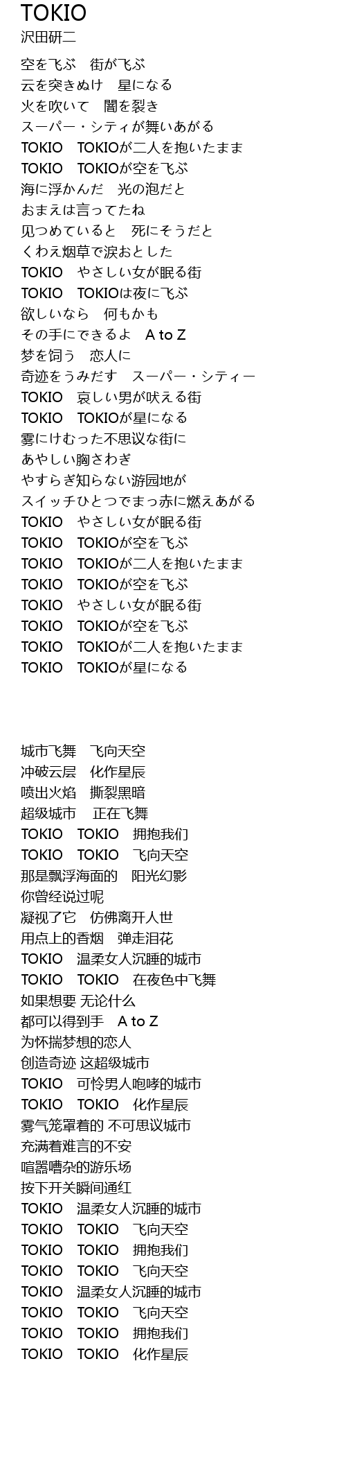 | [02:53.29] | TOKIO TOKIO yè fēi |