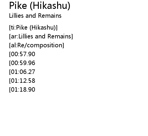 | [00:34.78][00:59.96][02:03.17][02:28.40] | 水をゆく ひとつのパイク |