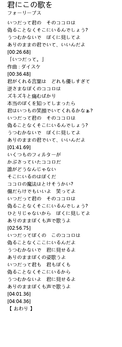 | [03:53.81] | ありのままぼくも声で歌うよ |