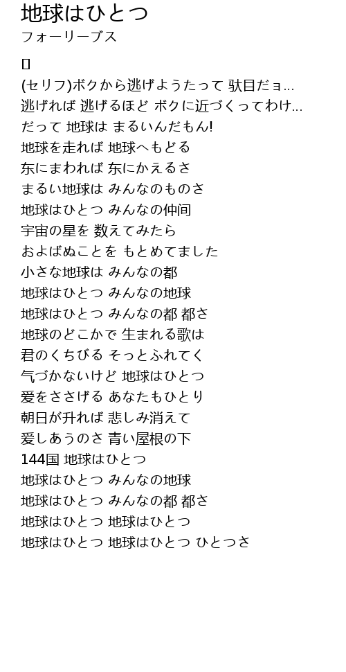 | 地球はひとつ 地球はひとつ ひとつさ |