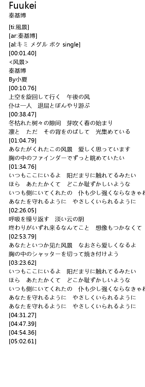| [02:56.75] | あなたといつか见た风景 なおさら爱しくなるよ |