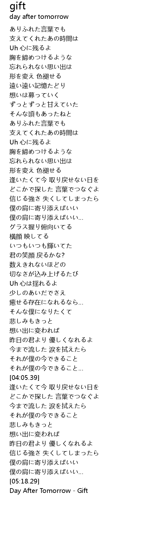 | [04:15.39] | 逢いたくて今 取り戻せない日を |