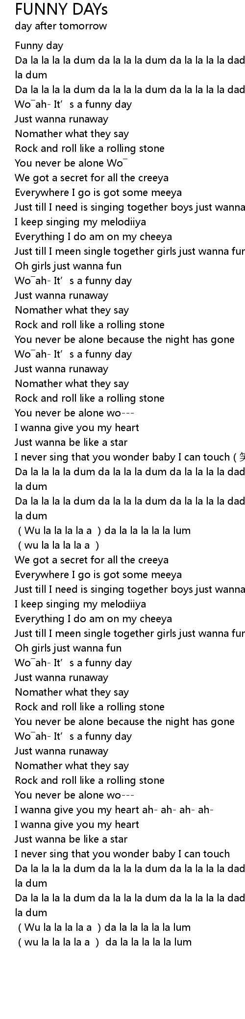 | [00:15.20] | Wo―ah- It’s a funny day |