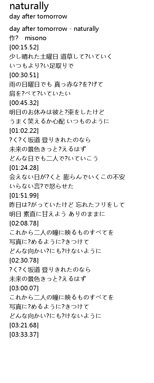 | [00:00.00] | day after tomorrow naturally |