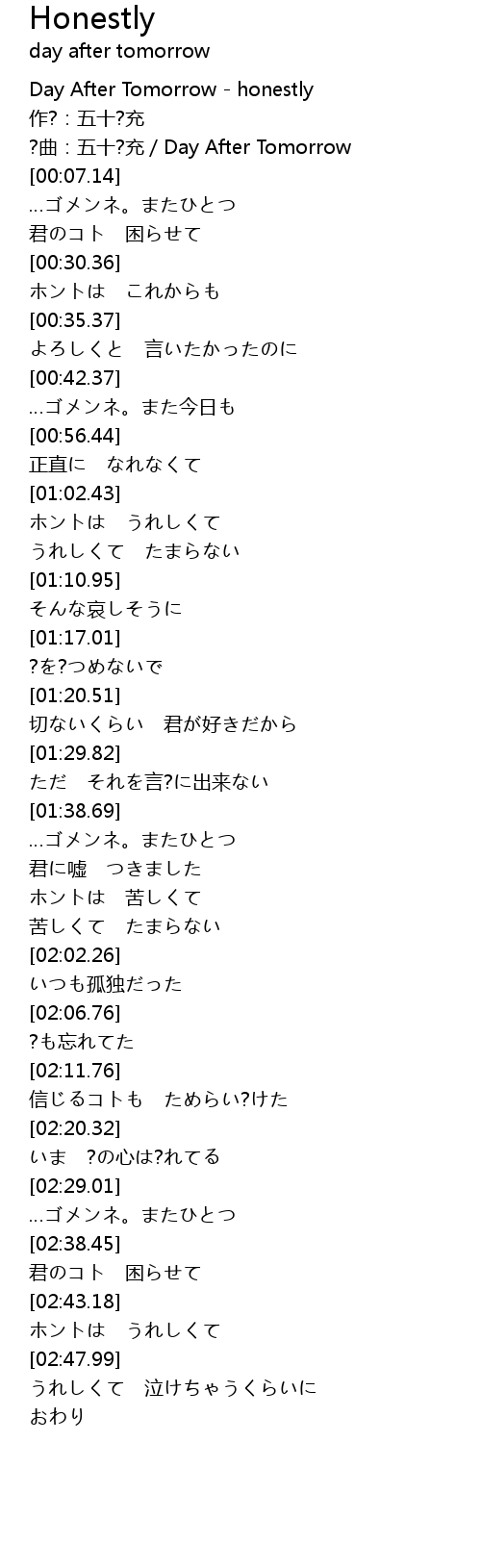 | [00:00.76] | Day After Tomorrow - honestly |