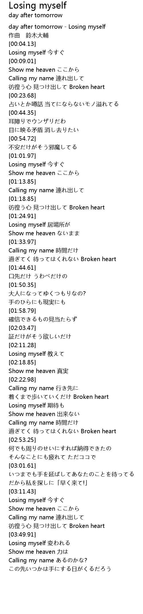| [00:00.56] | day after tomorrow Losing myself |