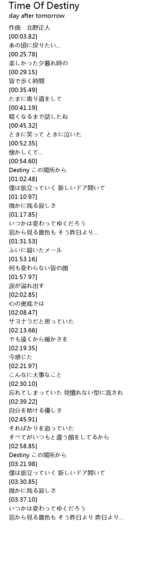 | [03:17.72] | Destiny この場所から |