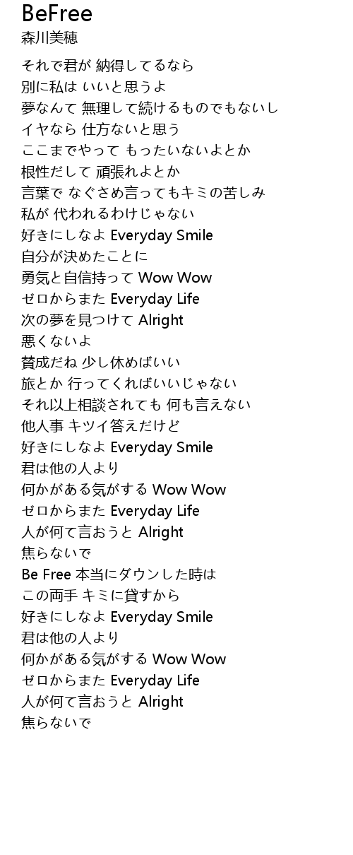 | Be Free 本当にダウンした時は | |