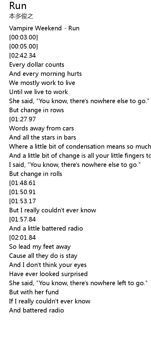 [02:35.67][01:27.97][00:37.56] It struck me that the two of us could run