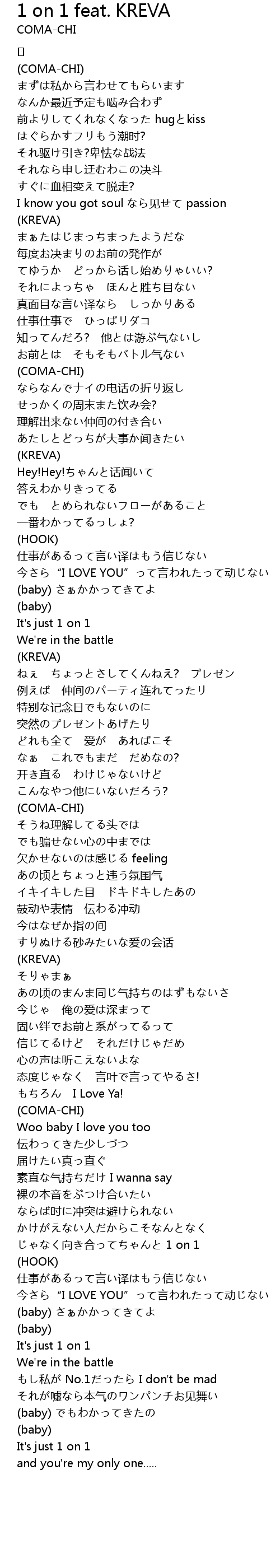 | Song | 1 on 1 feat. KREVA |