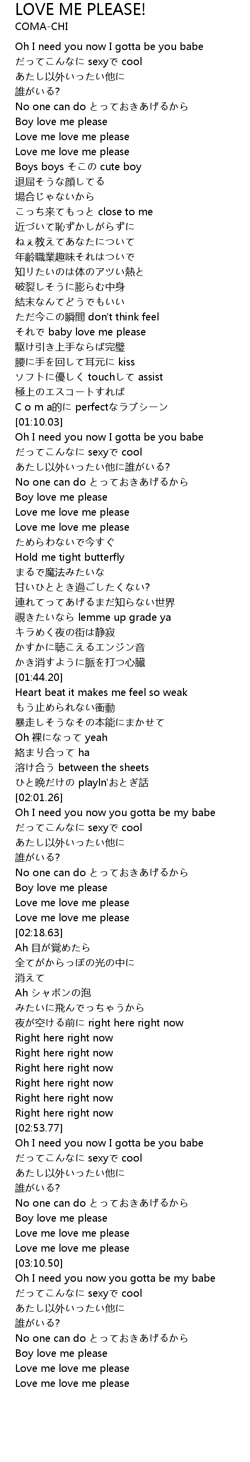 | [01:10.54] | Oh I need you now I gotta be you babe |