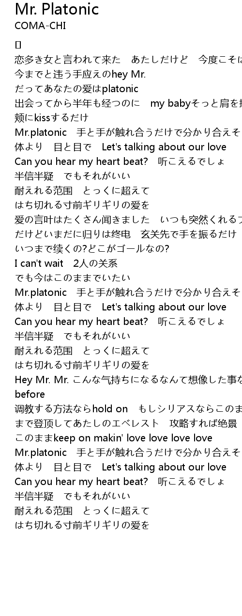 | Hey Mr. Mr. こんな气持ちになるなんて想像した事ない I never before | |