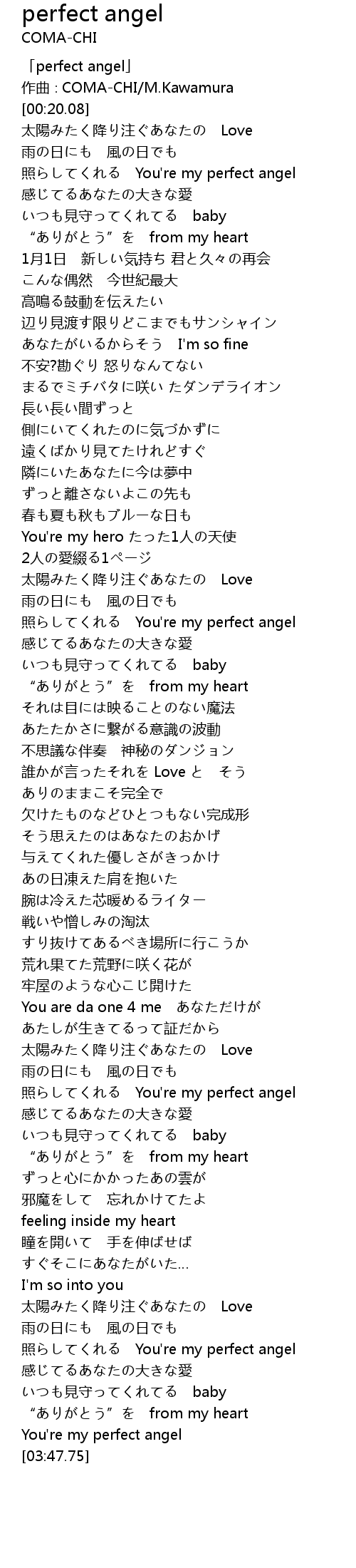 | [03:22.89] | 照らしてくれる You're my perfect angel |