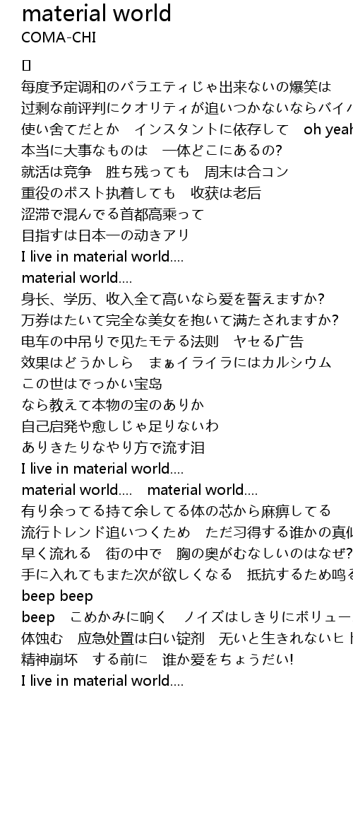 | 使い舍てだとか インスタントに依存して oh yeah | |