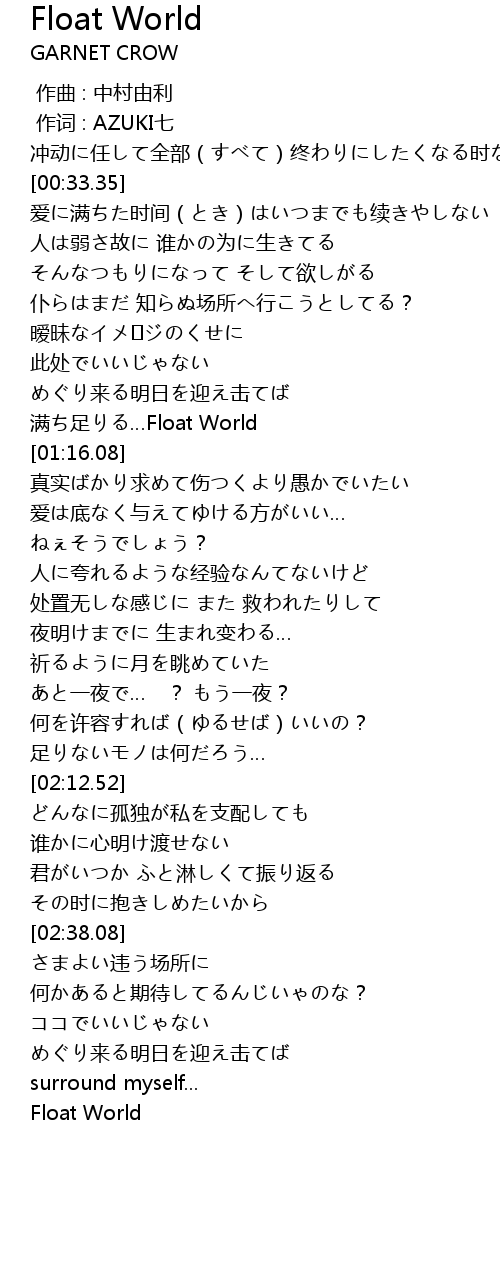 | [01:11.19] | 满ち足りる…Float World |
