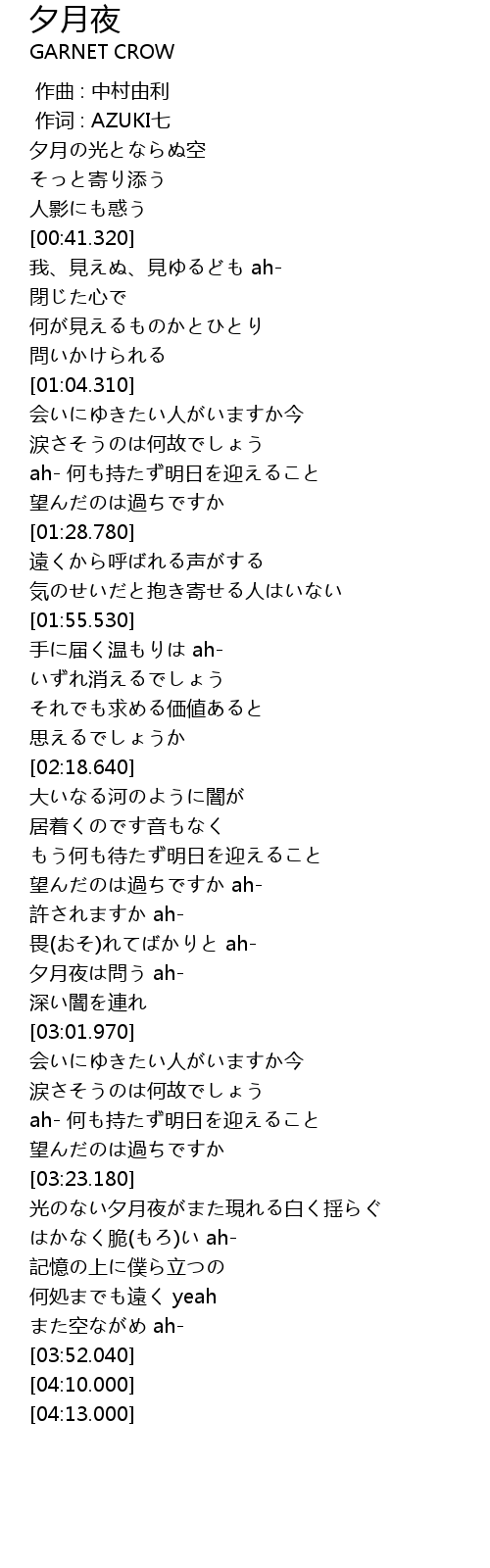 | [03:23.400] | 光のない夕月夜がまた現れる白く揺らぐ |
