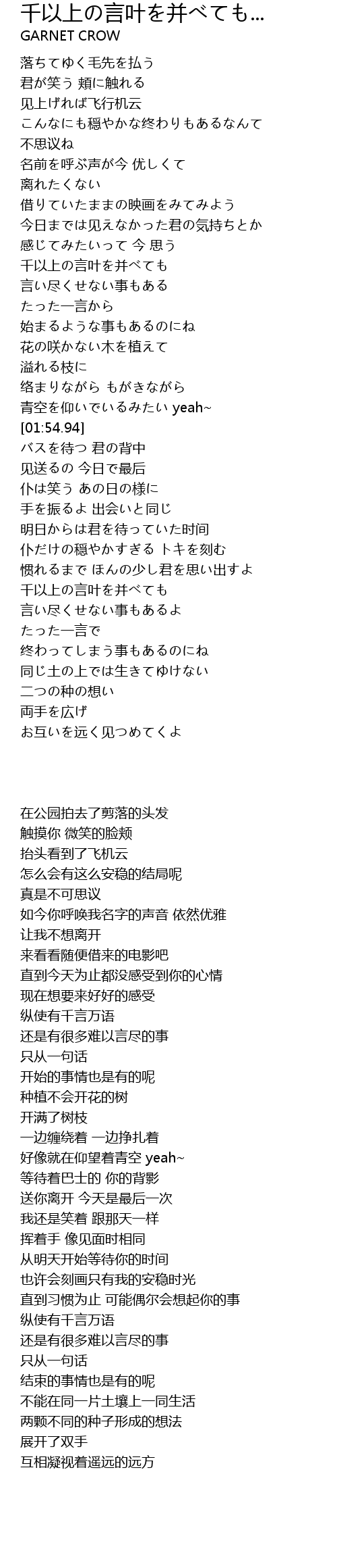| [02:56.14] | 言い尽くせない事もあるよ |