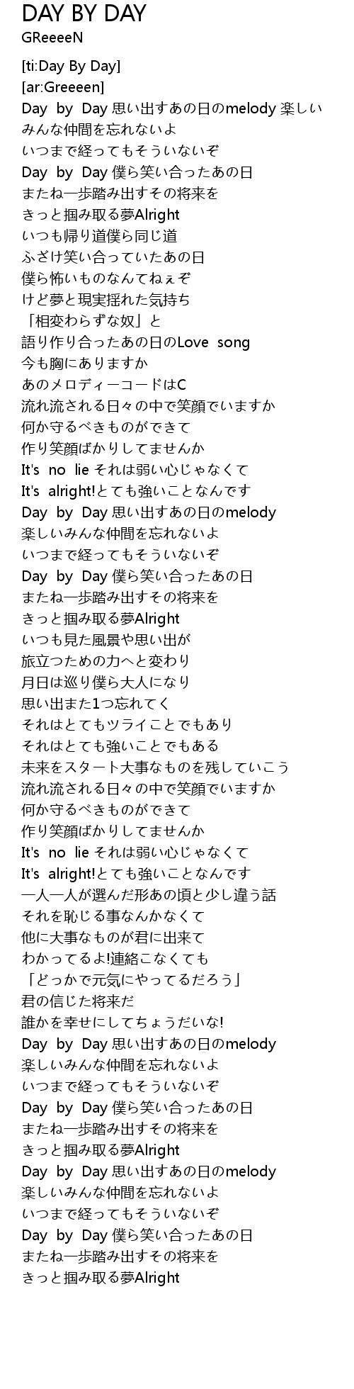| [02:59.99] | Day by Day 僕ら笑い合ったあの日 |