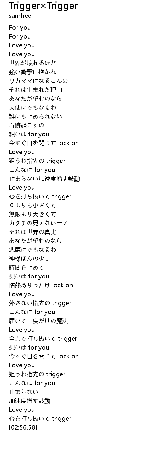 | [02:12.46] | 全力で打ち抜いて trigger |