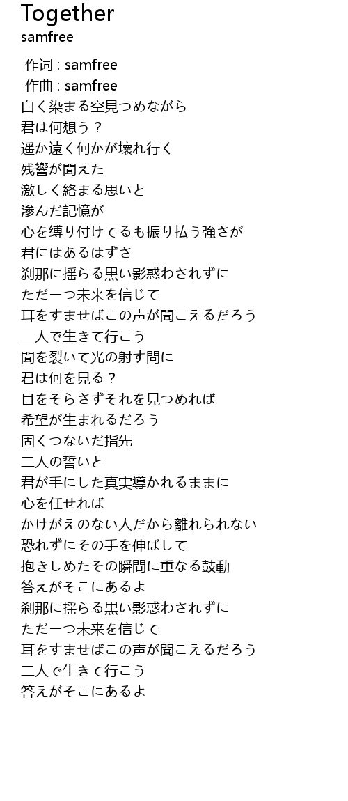 | [00:00.000] | 作词 : samfree |