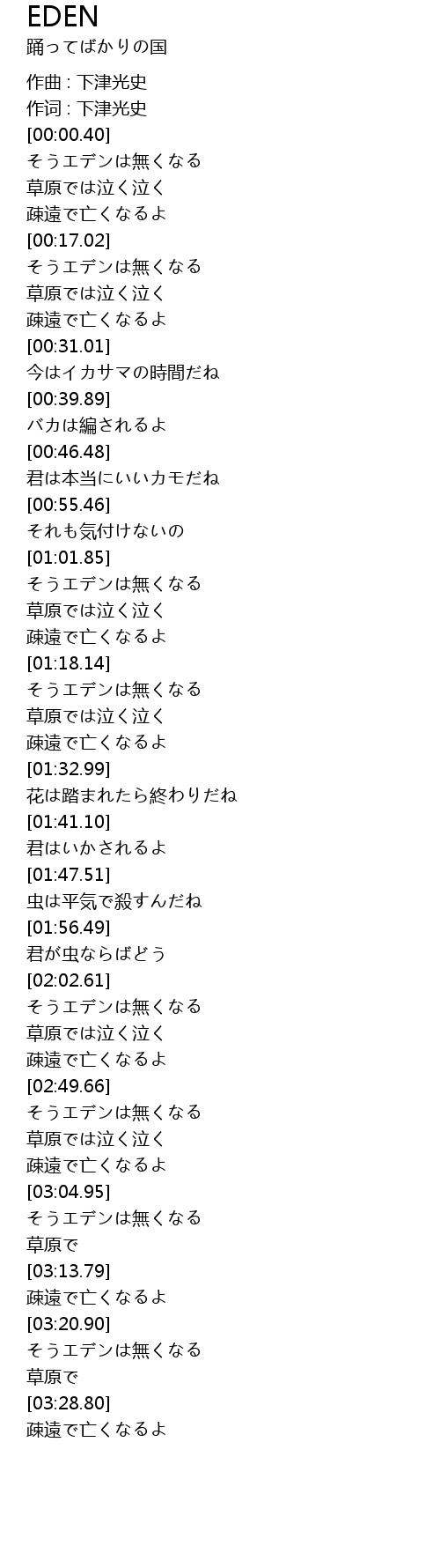 | [00:03.50] | そうエデンは無くなる |