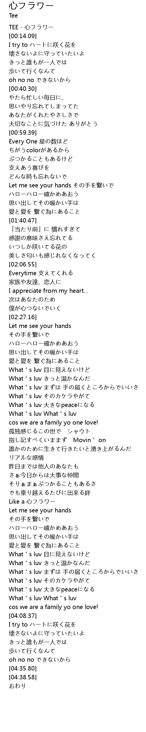 | [00:00.00] | TEE - 心フラワー |