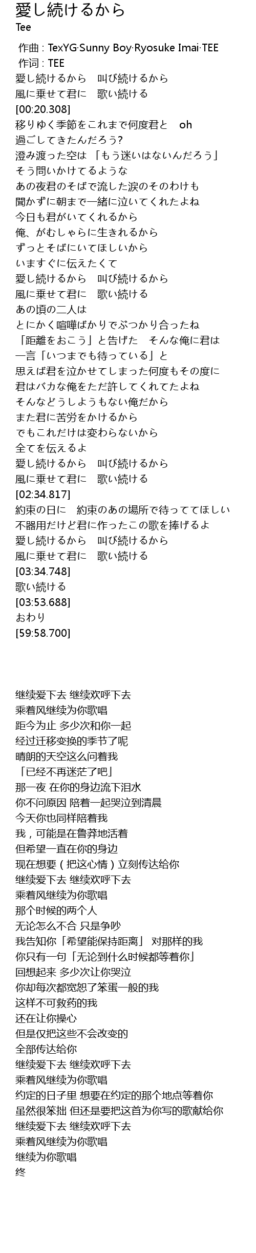 | [03:15.148] | 愛し続けるから 叫び続けるから |