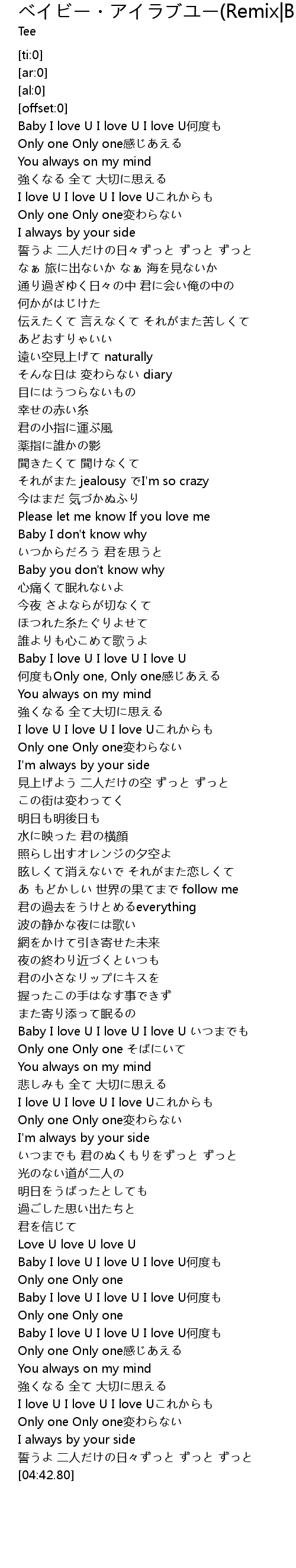 | [02:59.64] | Baby I love U I love U I love U いつまでも |
