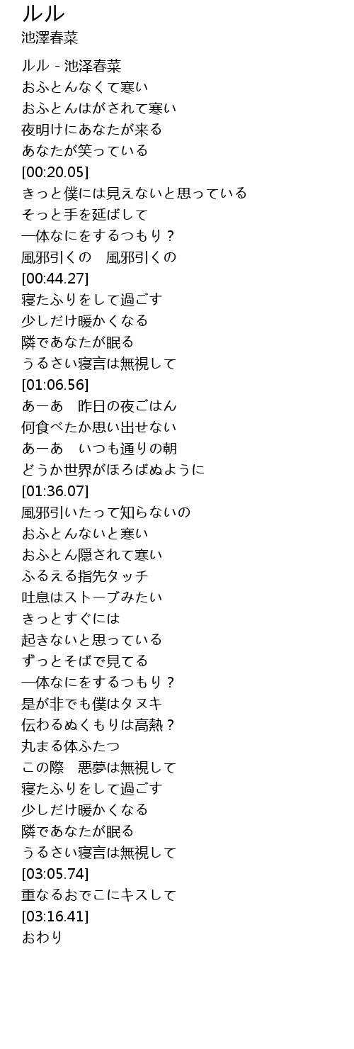 | [00:03.50] | ルル - 池泽春菜 |