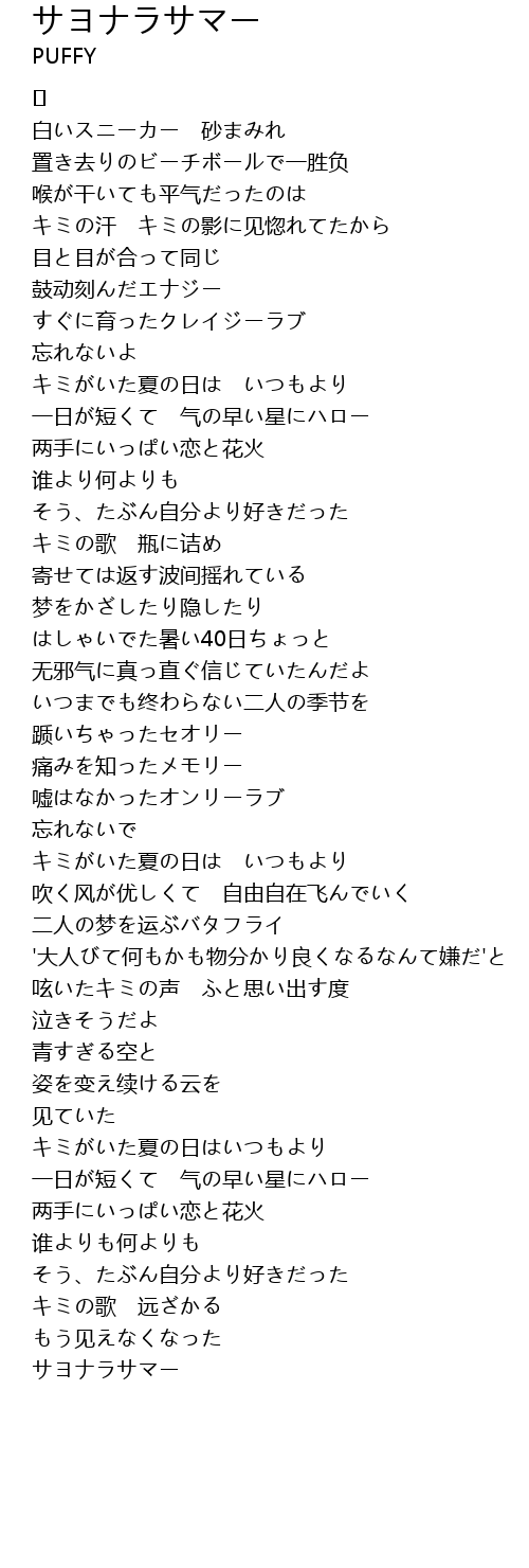| Song | サヨナラサマー |