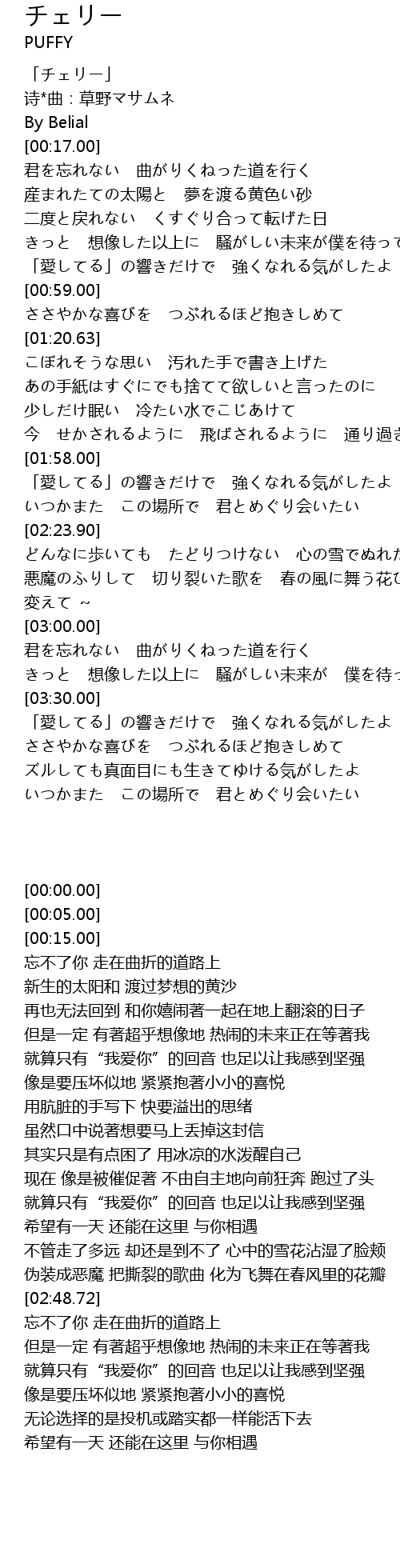 | [00:00.00] | 「チェリー」 |