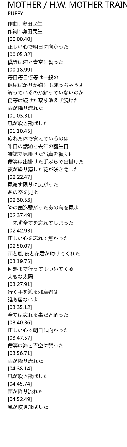 | Song | MOTHER / H.W. MOTHER TRAIN MIX |
