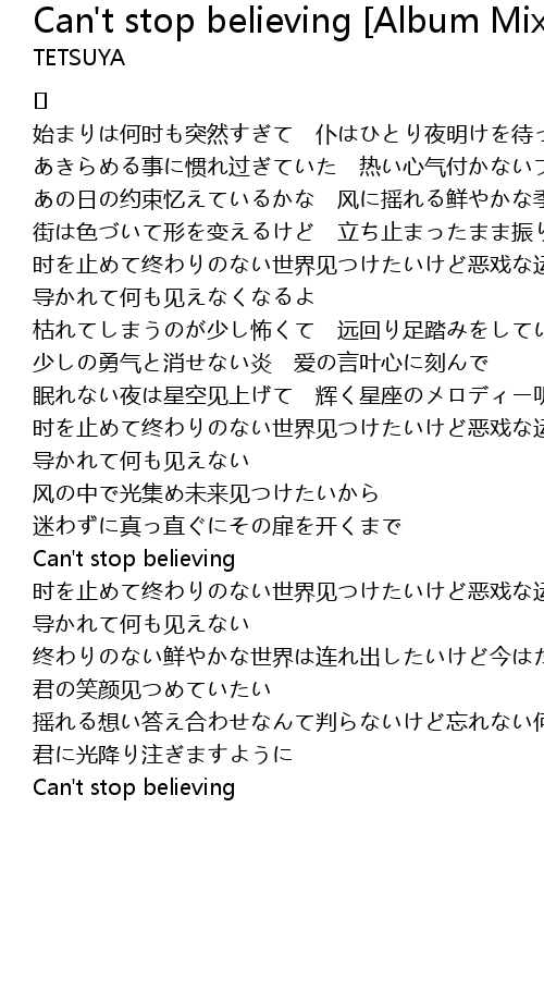 | Can' t stop believing | |