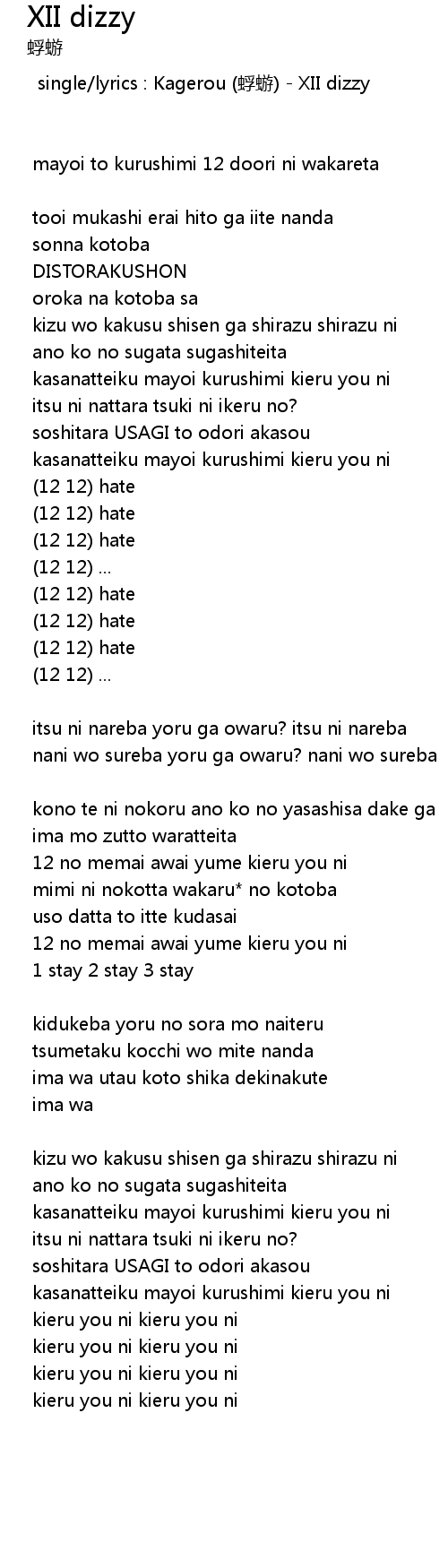 | single lyrics : Kagerou fu you XII dizzy | |