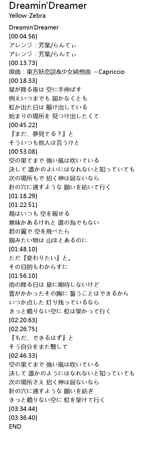 | [00:01.34] | Dreamin' Dreamer |