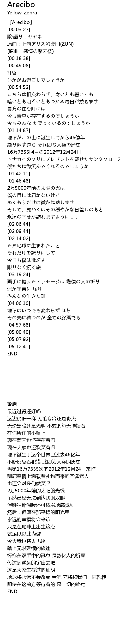 | [00:00.52] | 『Arecibo』 |