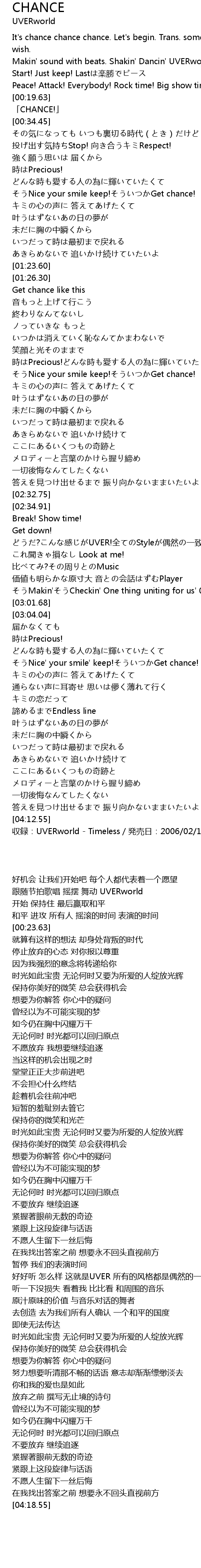 | [04:18.55] | shou lu: UVERworld Timeless fa mai ri: 2006 02 15 |