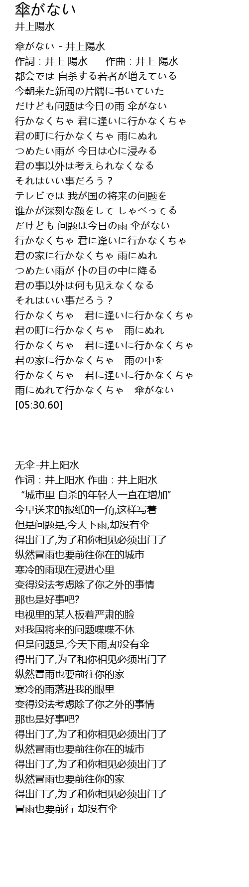 | [00:00.07] | 傘がない - 井上陽水 |